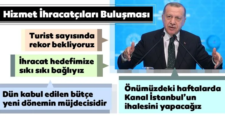 Başkan Recep Tayyip Erdoğan, Hizmet İhracatçıları Buluşması ve 2018 Yılı HİB Ödül Töreni'nde önemli açıklamalarda bulundu. Kanal İstanbul projesine ilişkin çok önemli mesajlar veren Başkan Erdoğan, "Önümüzdeki haftalarda ihale yapmayı planlıyoruz. Kanal İstanbul'un bir çok özelliği var, Türkiye'ye kazandıracağı haklar var. Selimiye'nin önünde tanker 7 ayı aşkın zaman yandı. Büyük bir tehlikeydi. Fakat Kanal İstanbul ile bir defa bu tehditler adeta yok seviyesine geleceği gibi, ülkemize ciddi manada getirisi olacaktır. Tüm bunların çalışmaları yapılmış, Karadeniz'den Marmara'ya iniş, farklı bir özellikle Kanal İstanbul sahip çıkacaktır." dedi.
